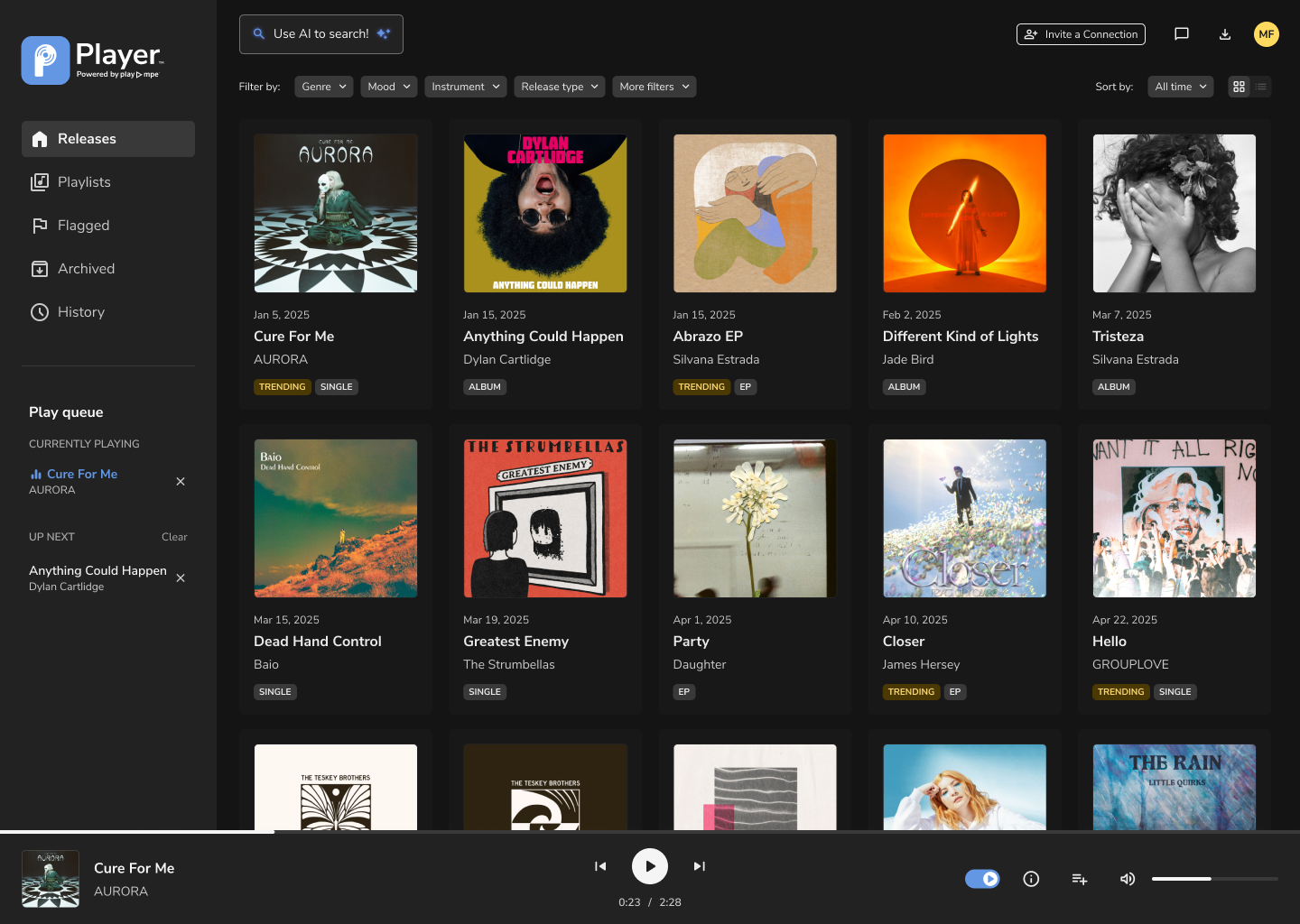 Access the latest releases and discover new music in Player