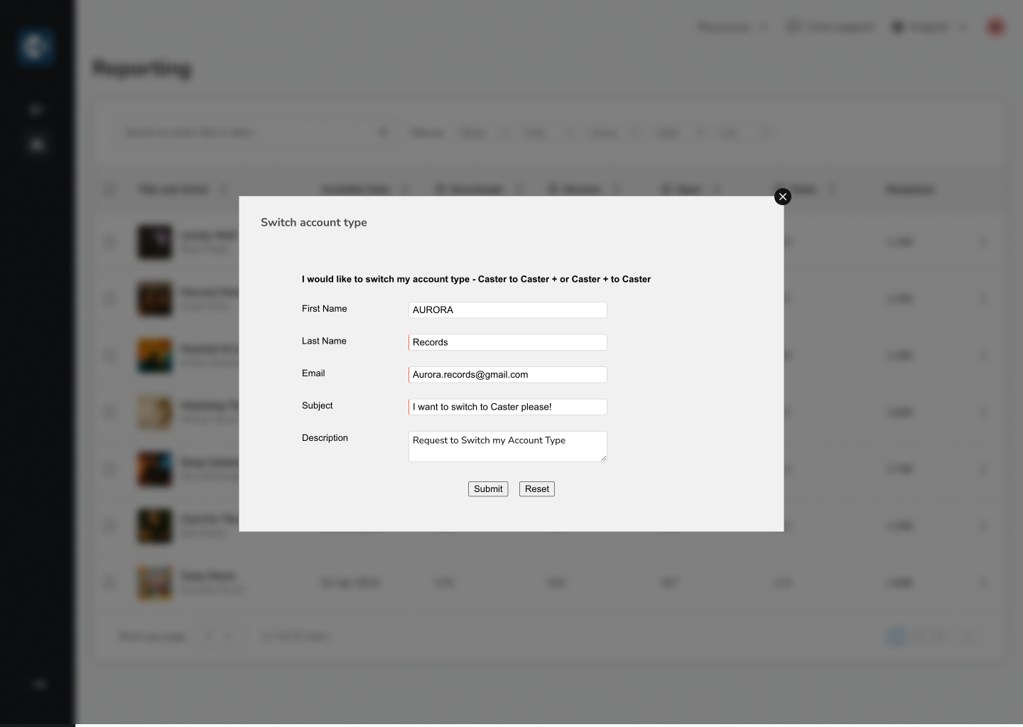 Once you have signed up, it’s easy to make a request to switch your account type from within Caster.
